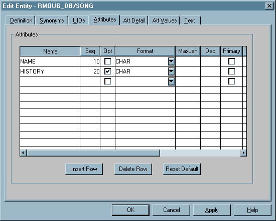 - Opt is checked for optional Attributes.